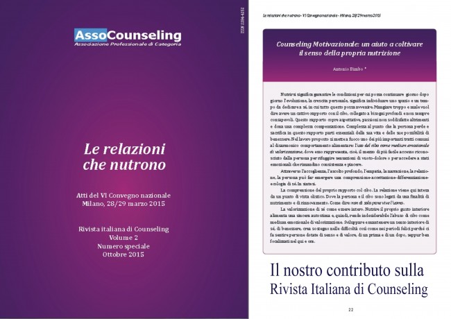 counseling motivazionale e nutrizione sulla Rivista Italiana di Counseling